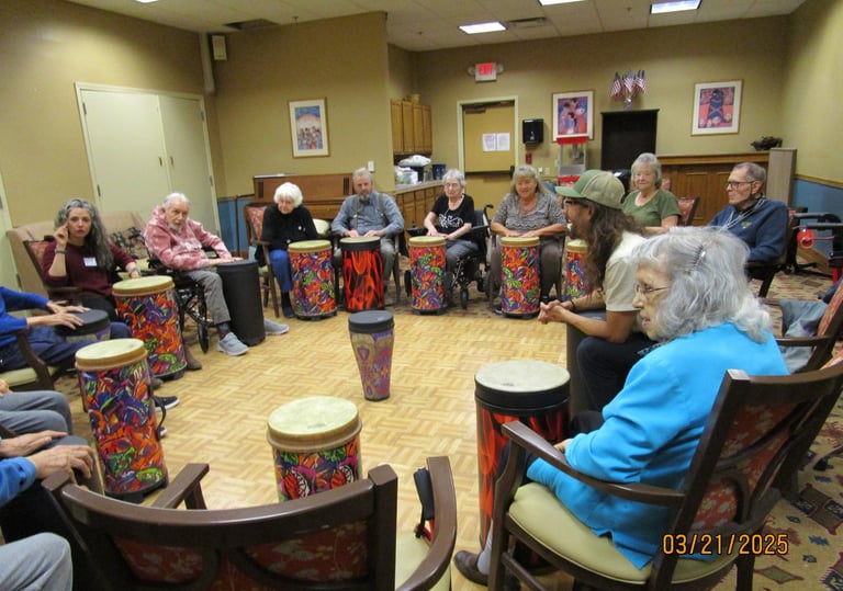 Driven by a thirst for authentic experience and a deep trust in the healing power of Music, I immersed myself in the transformative world of drumming. The programs I've trained under include: HealthRhythms by REMO, REI by The Strong Institute, and the Rhythm2Recovery drumming for social wellness.